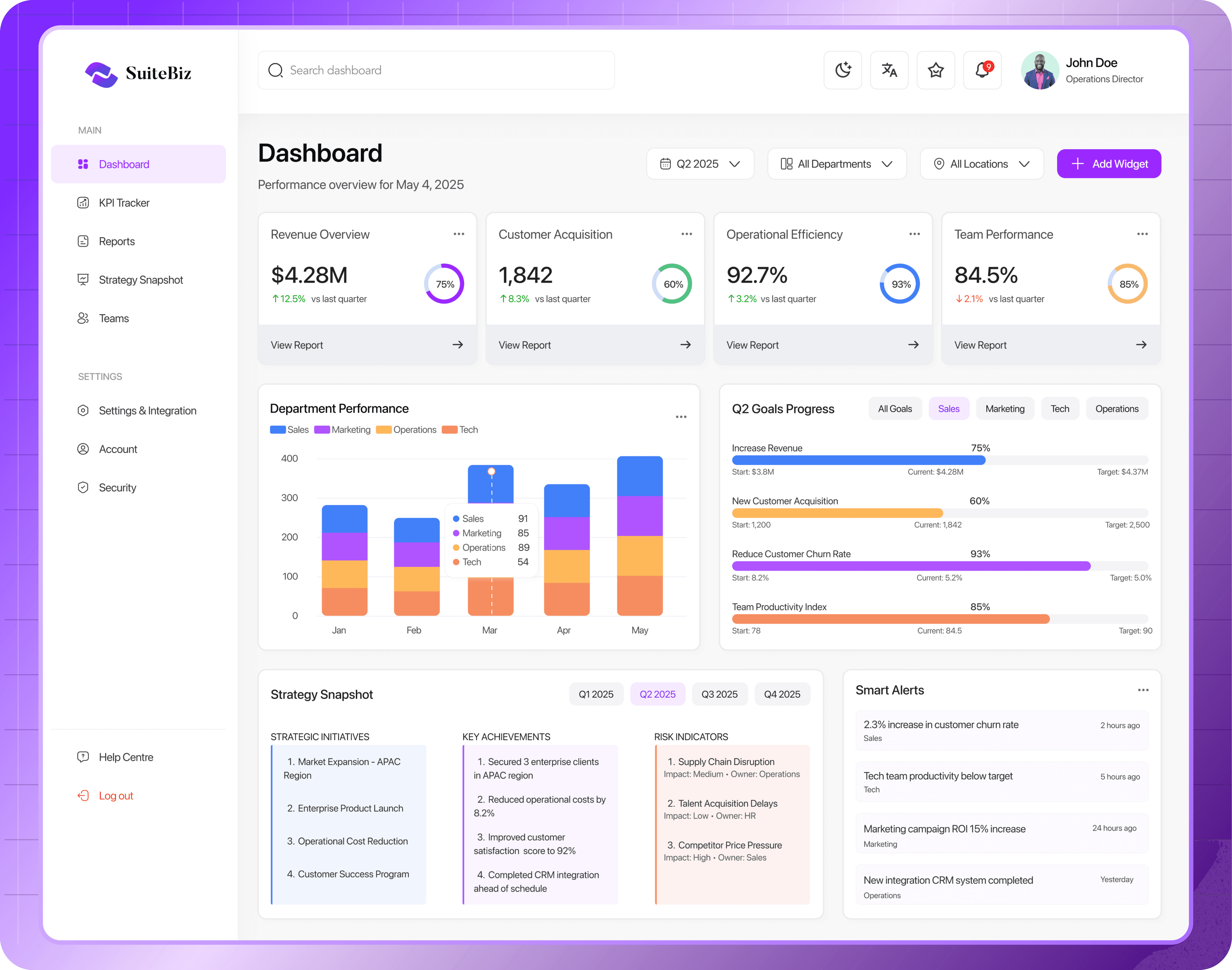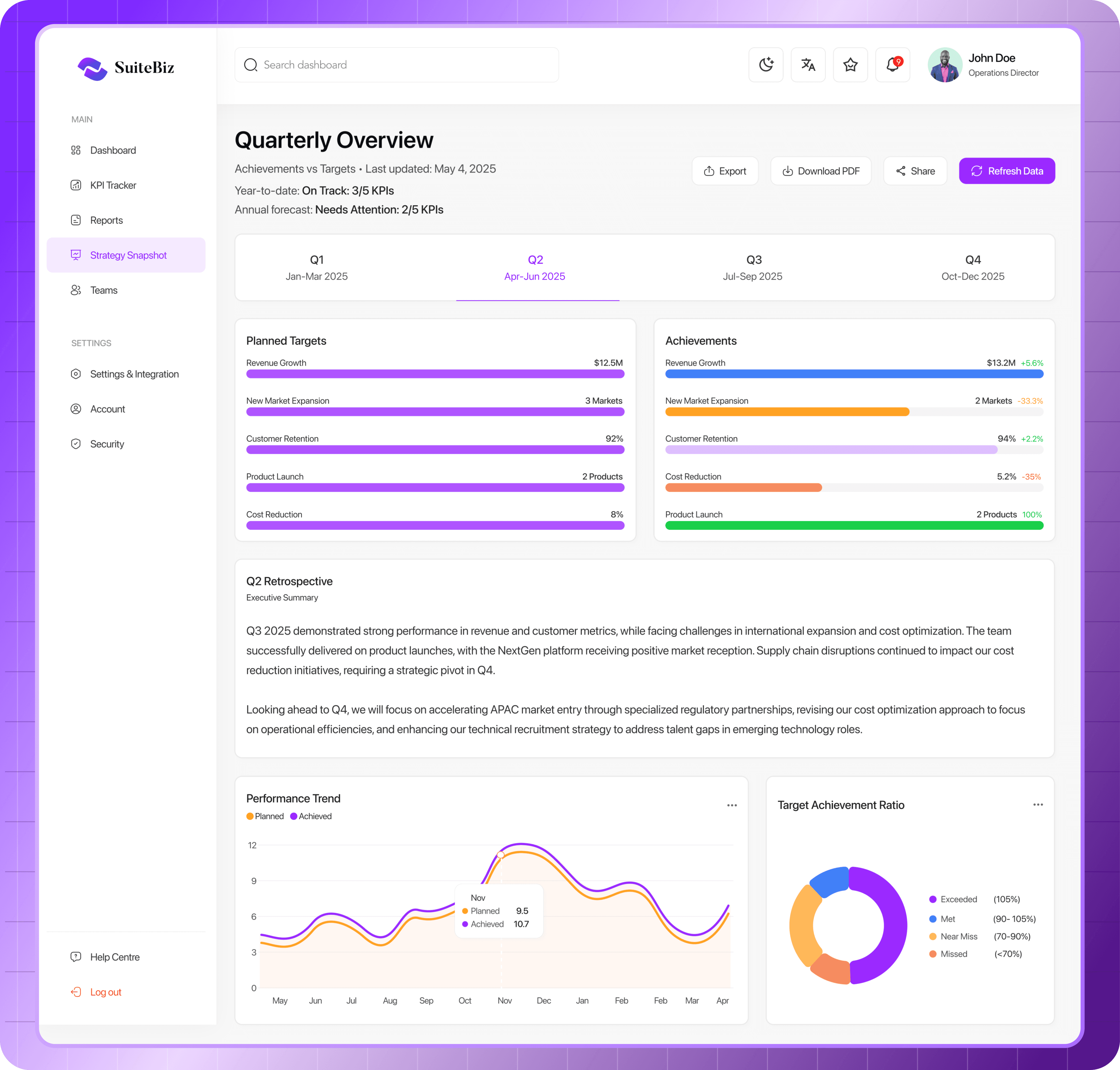 Strategy Snapshot → Keeps leadership focused on long-term outcomes, not just daily numbers.