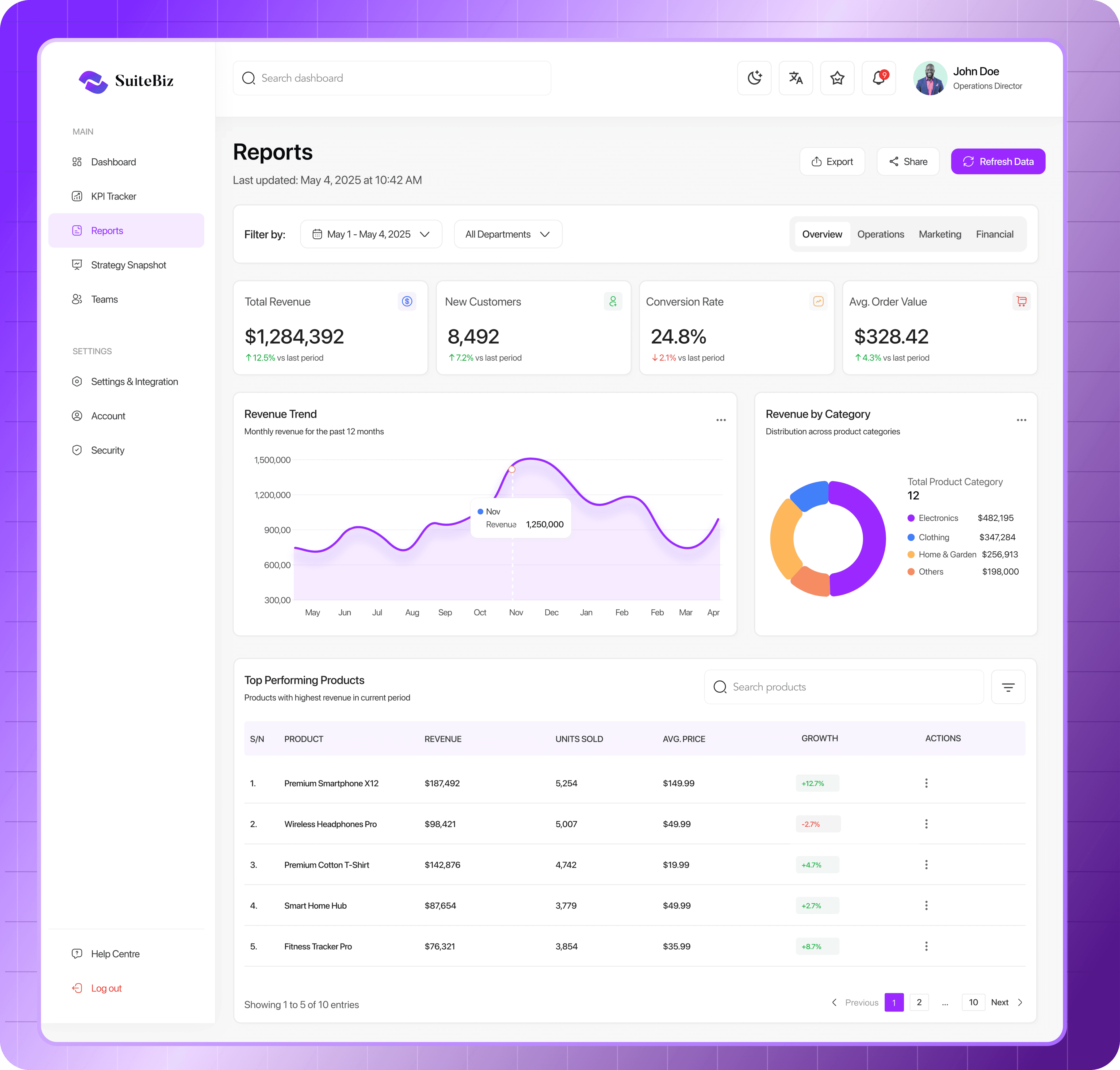 Many companies rely on fragmented tools (spreadsheets, siloed dashboards, manual reporting) to track operations, making it difficult to: