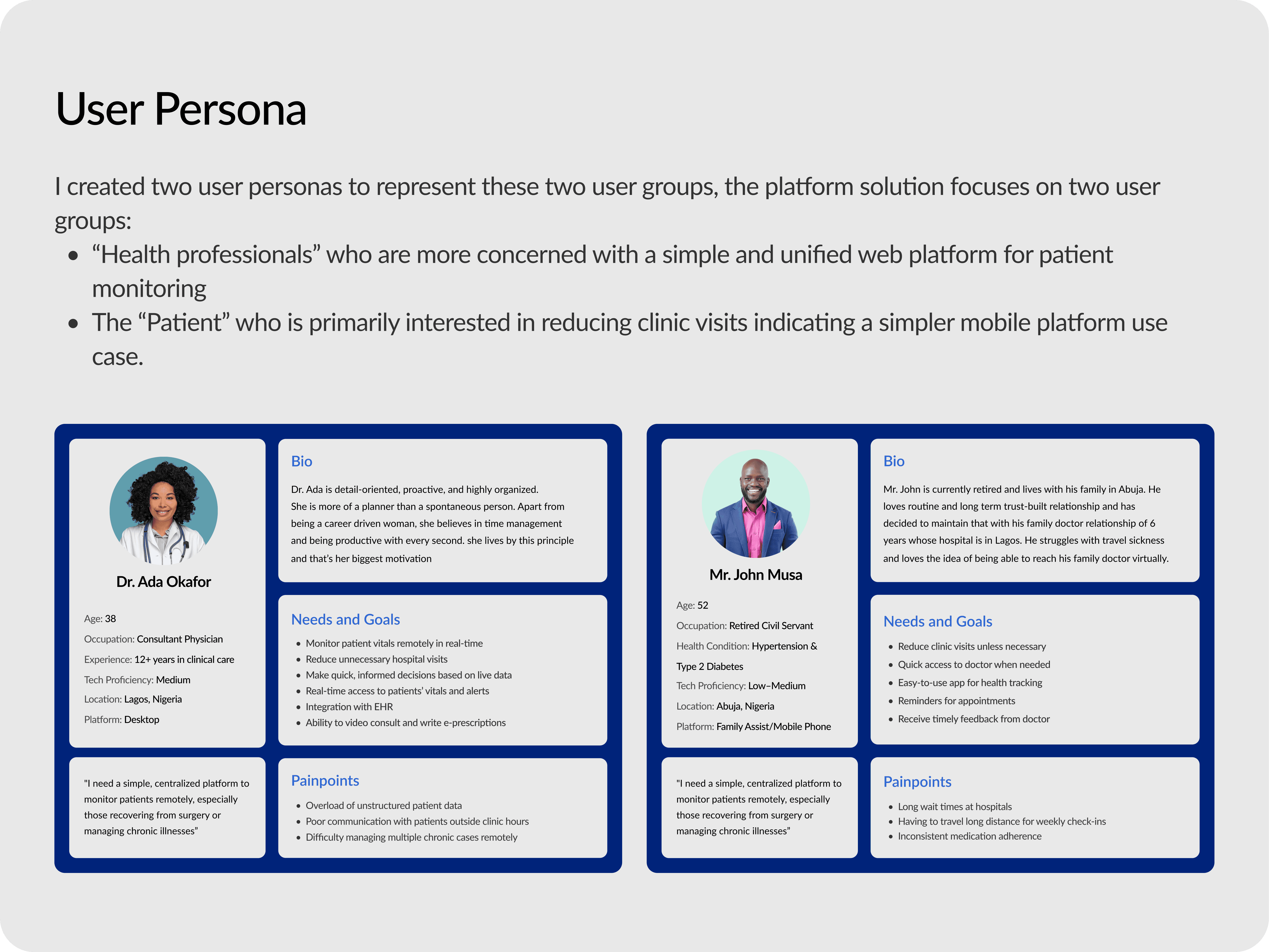 The second persona represent the “Patient” who is primarily interested in reducing clinic visits indicating a simpler mobile platform use case. This enables them connect/sync with their healthcare provider