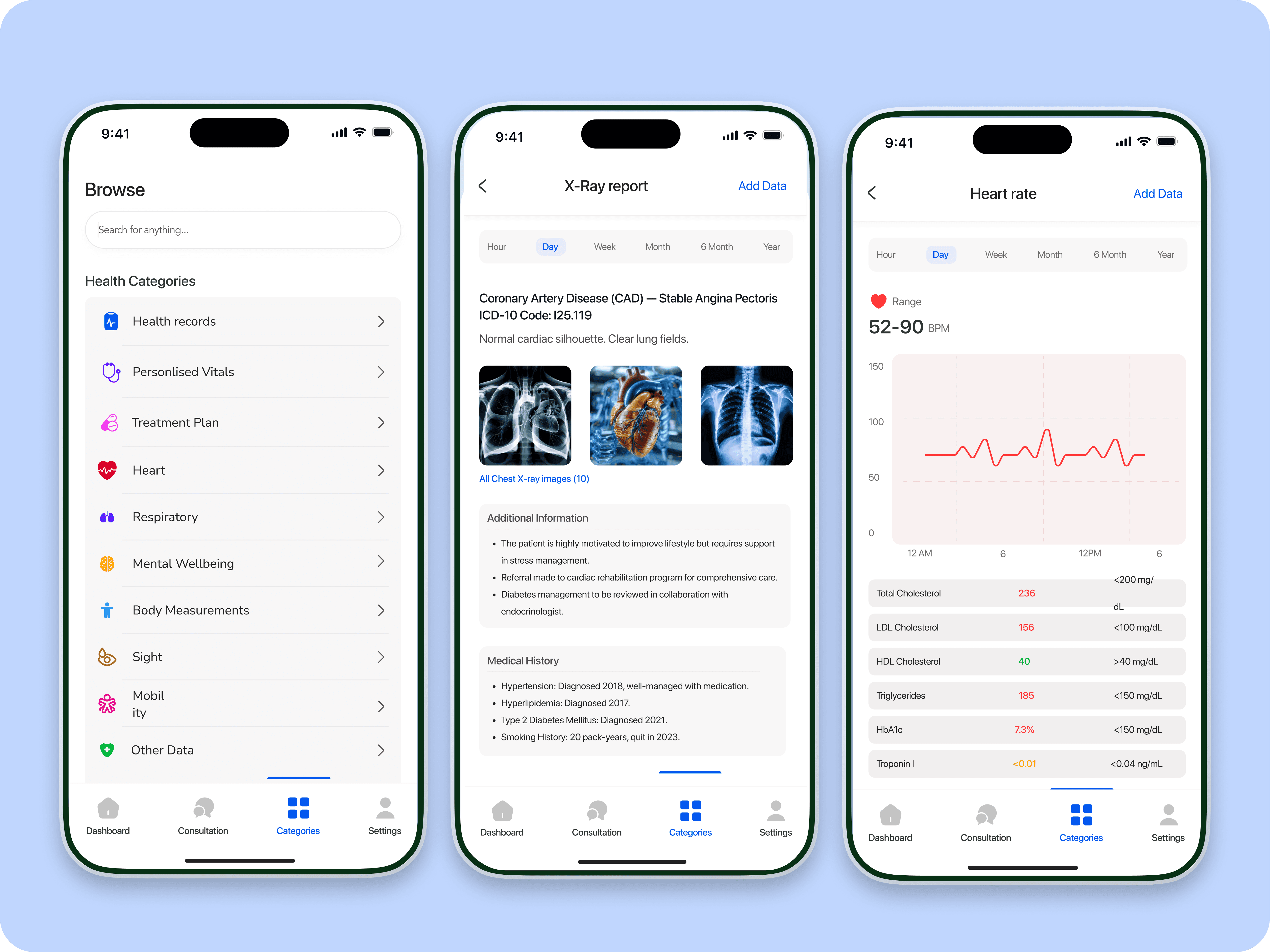 Design Decision: Built visual trend lines, health score summaries, and alerts for abnormal patterns.