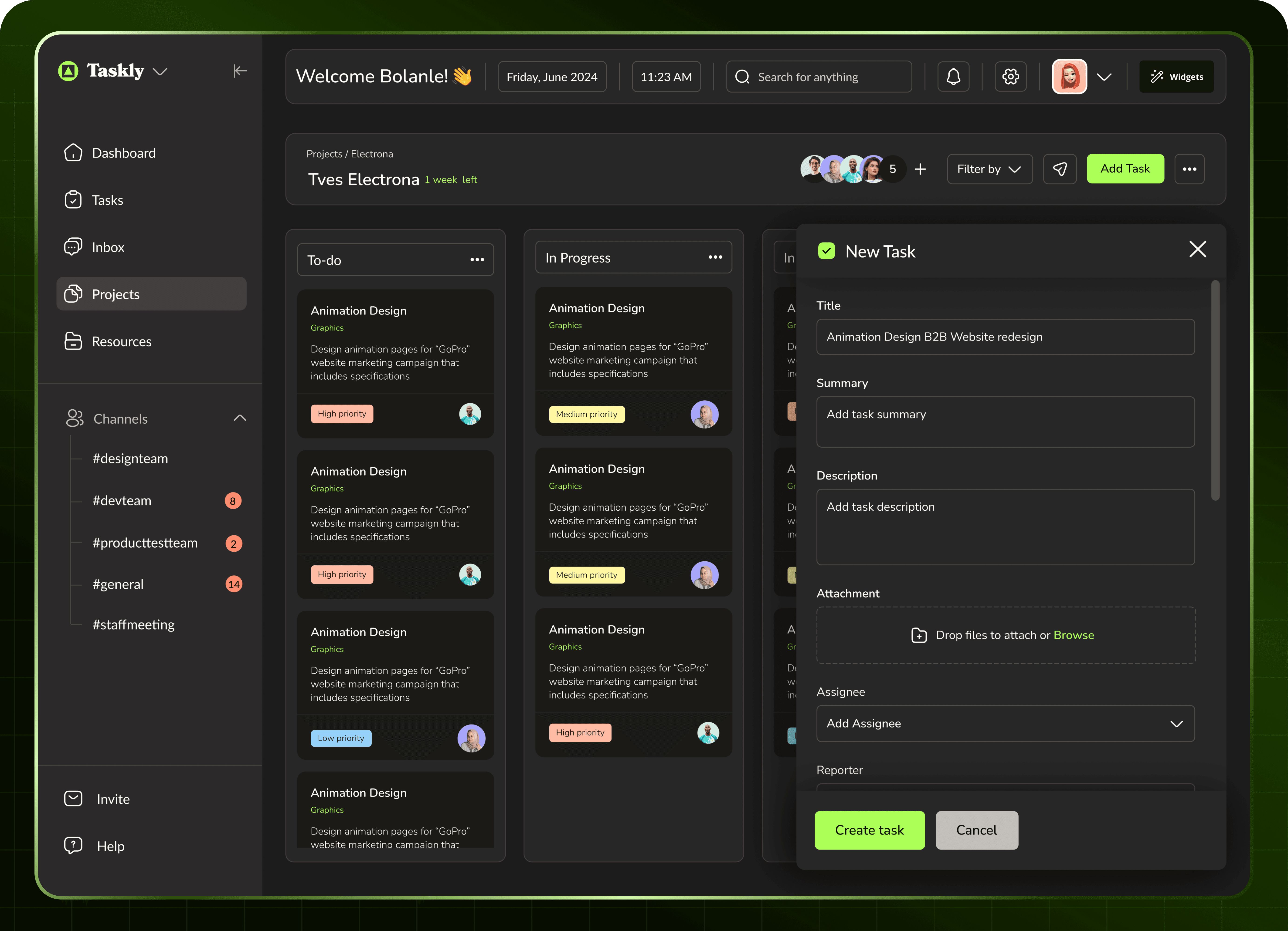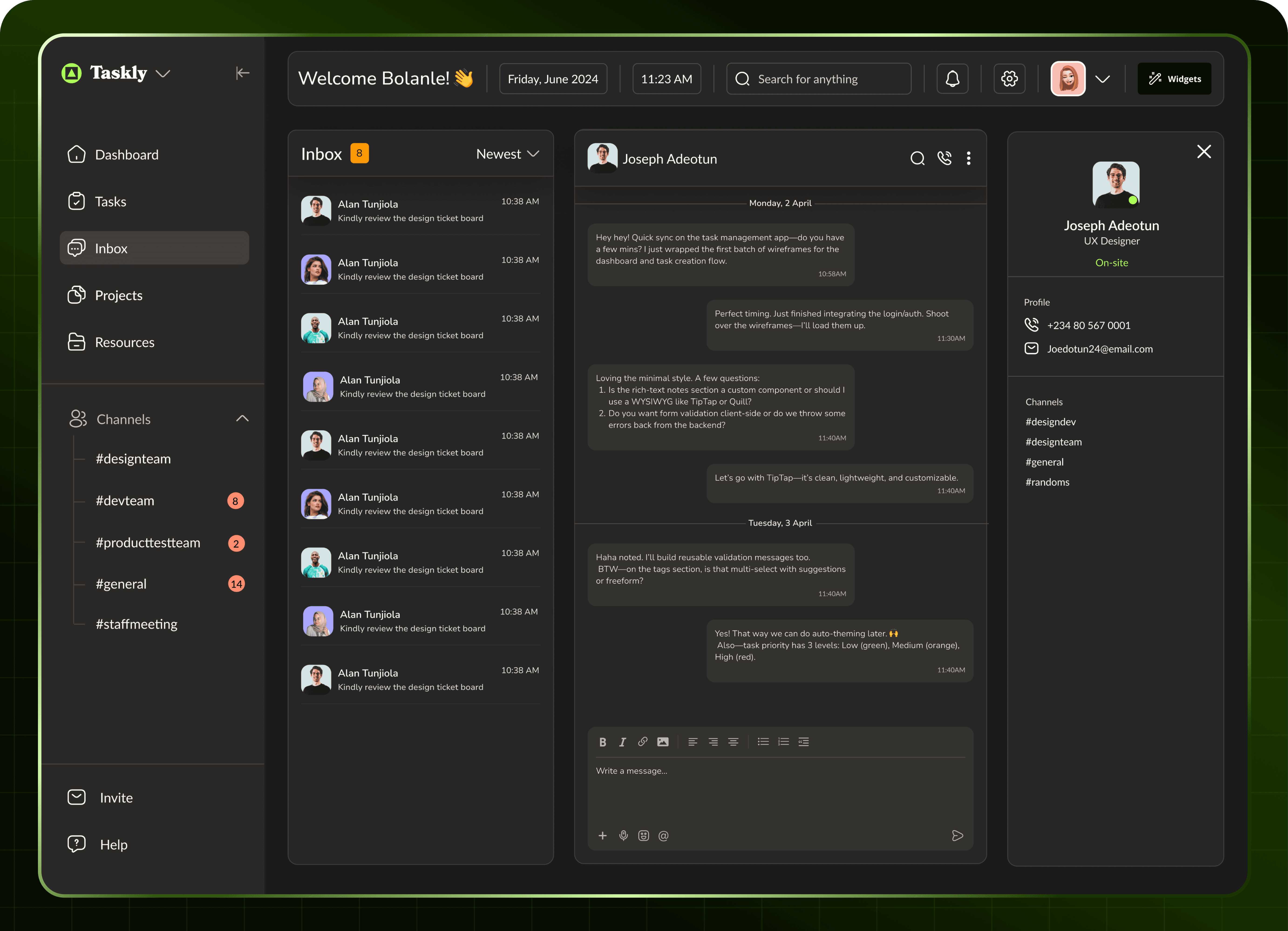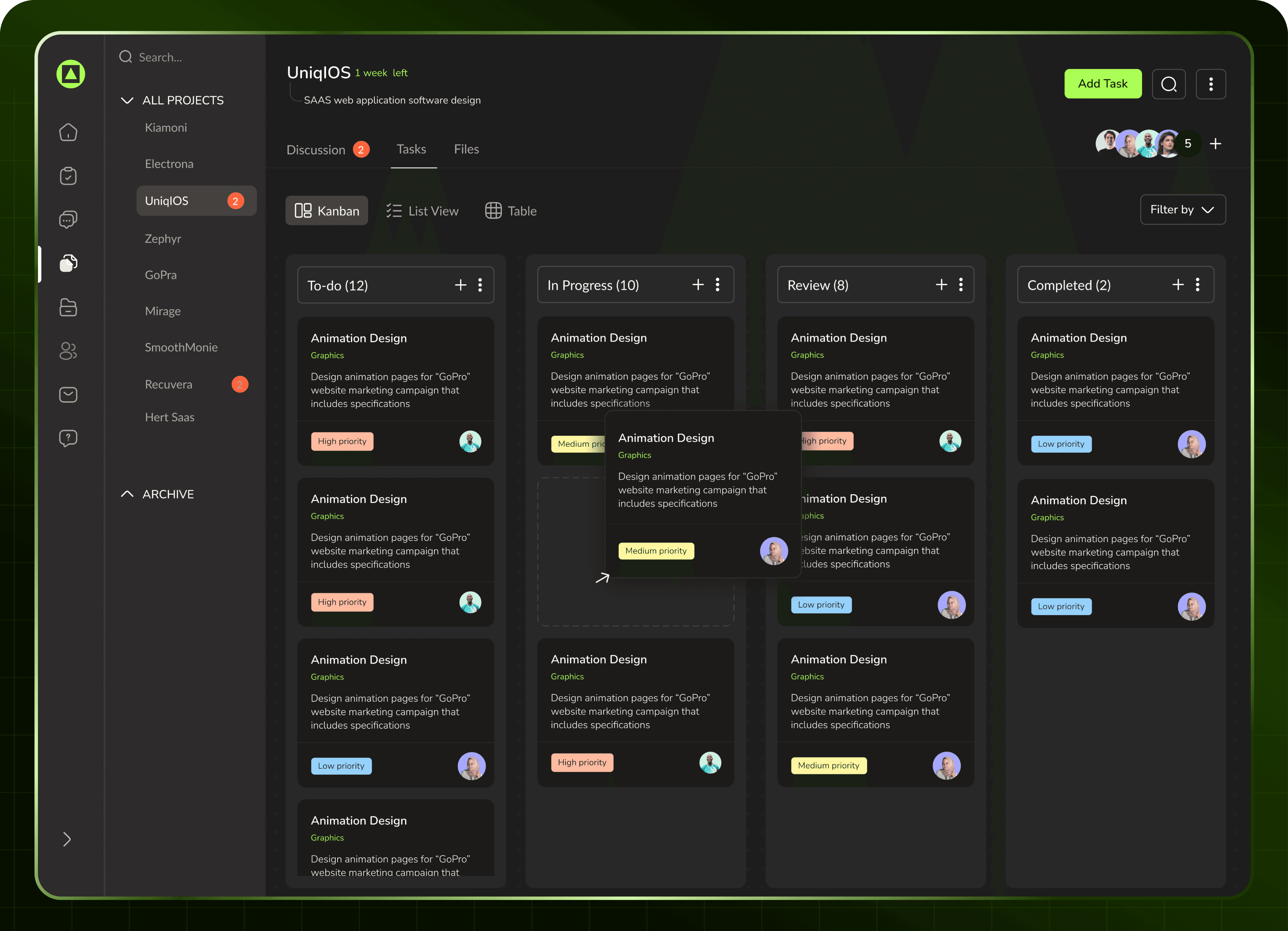 A drag-and-drop Kanban board, in-app messaging, progress tracker, real-time collaboration, and minimalist task dashboards — everything needed to manage projects efficiently without the bloat.