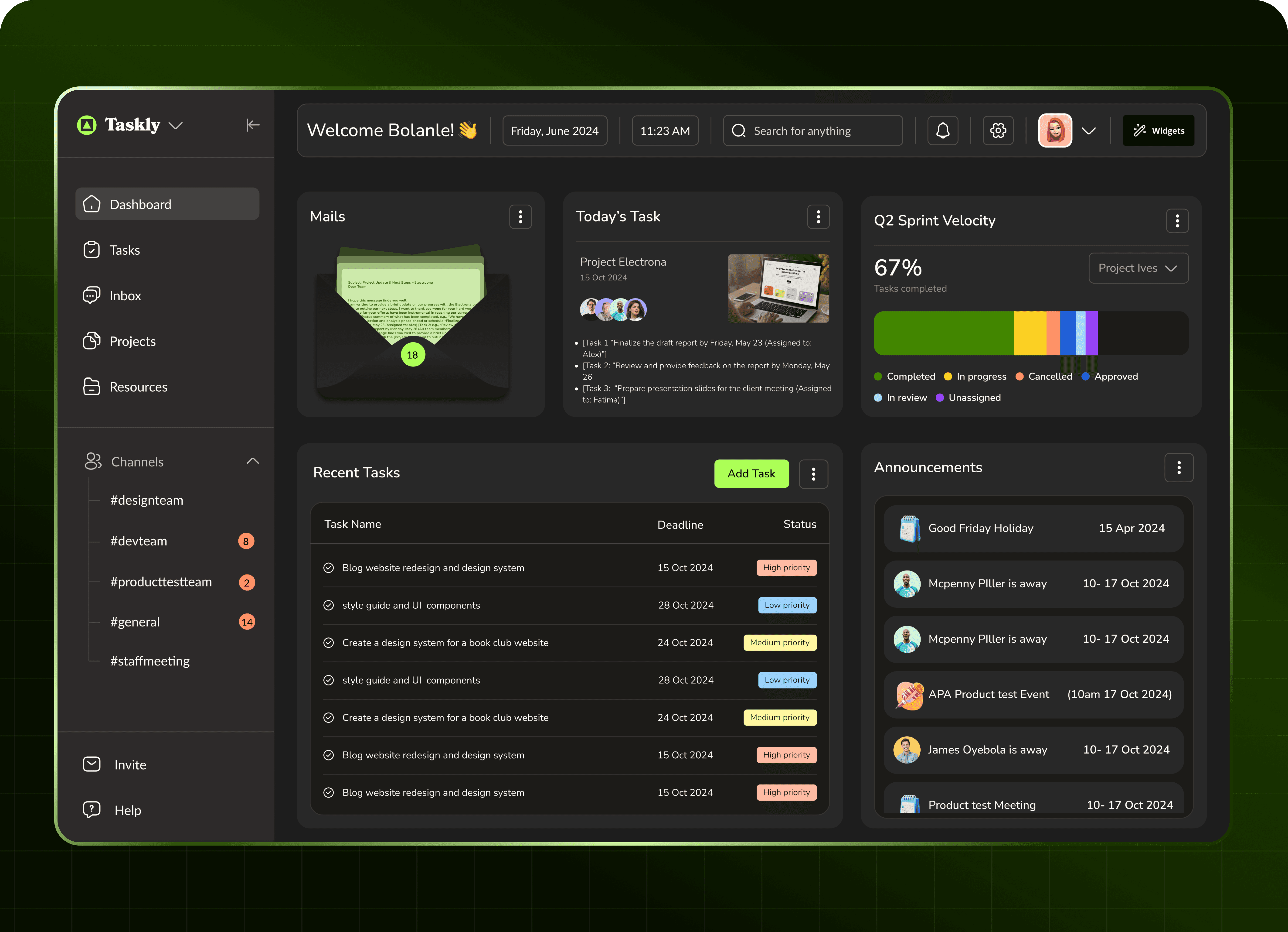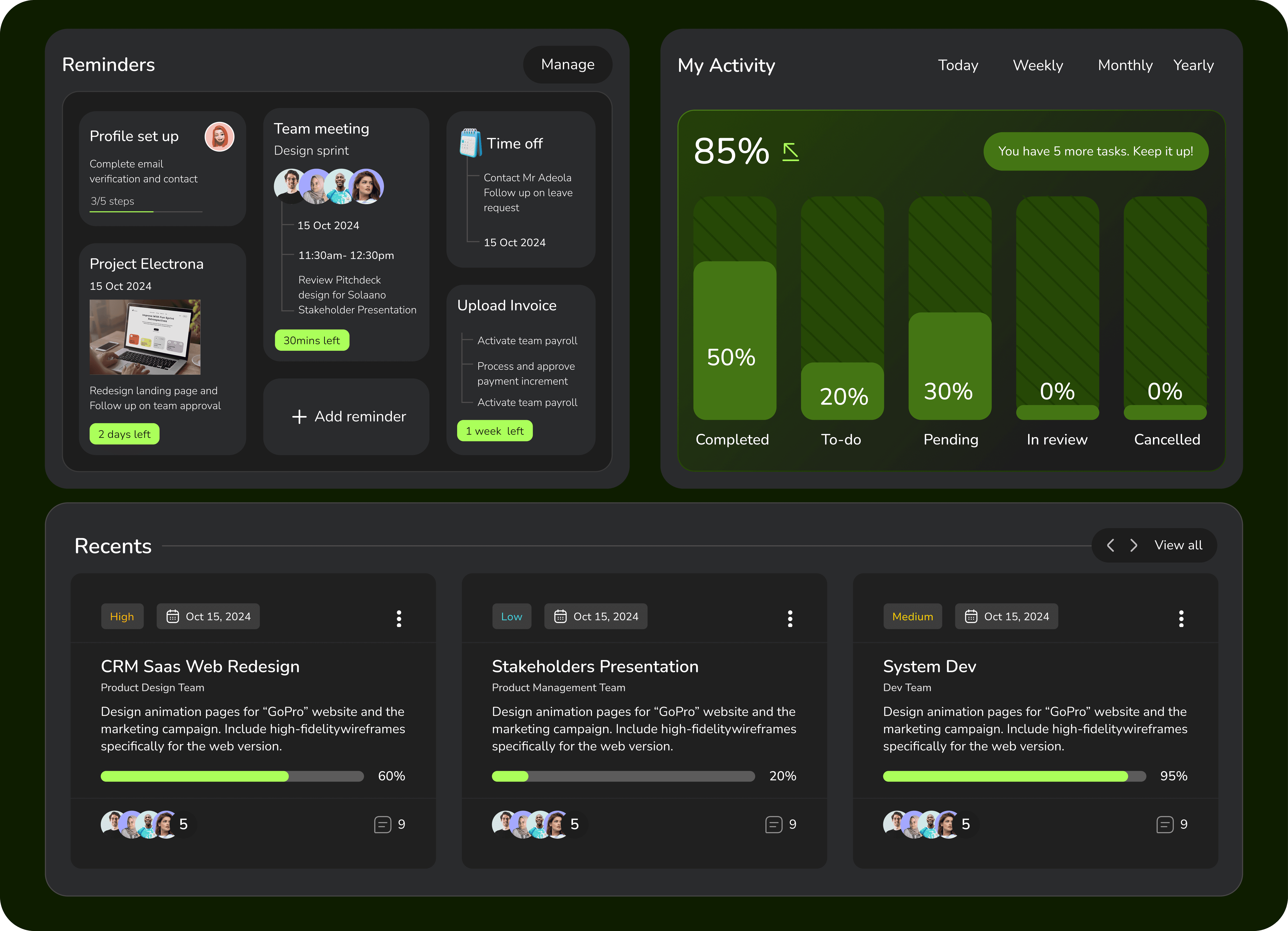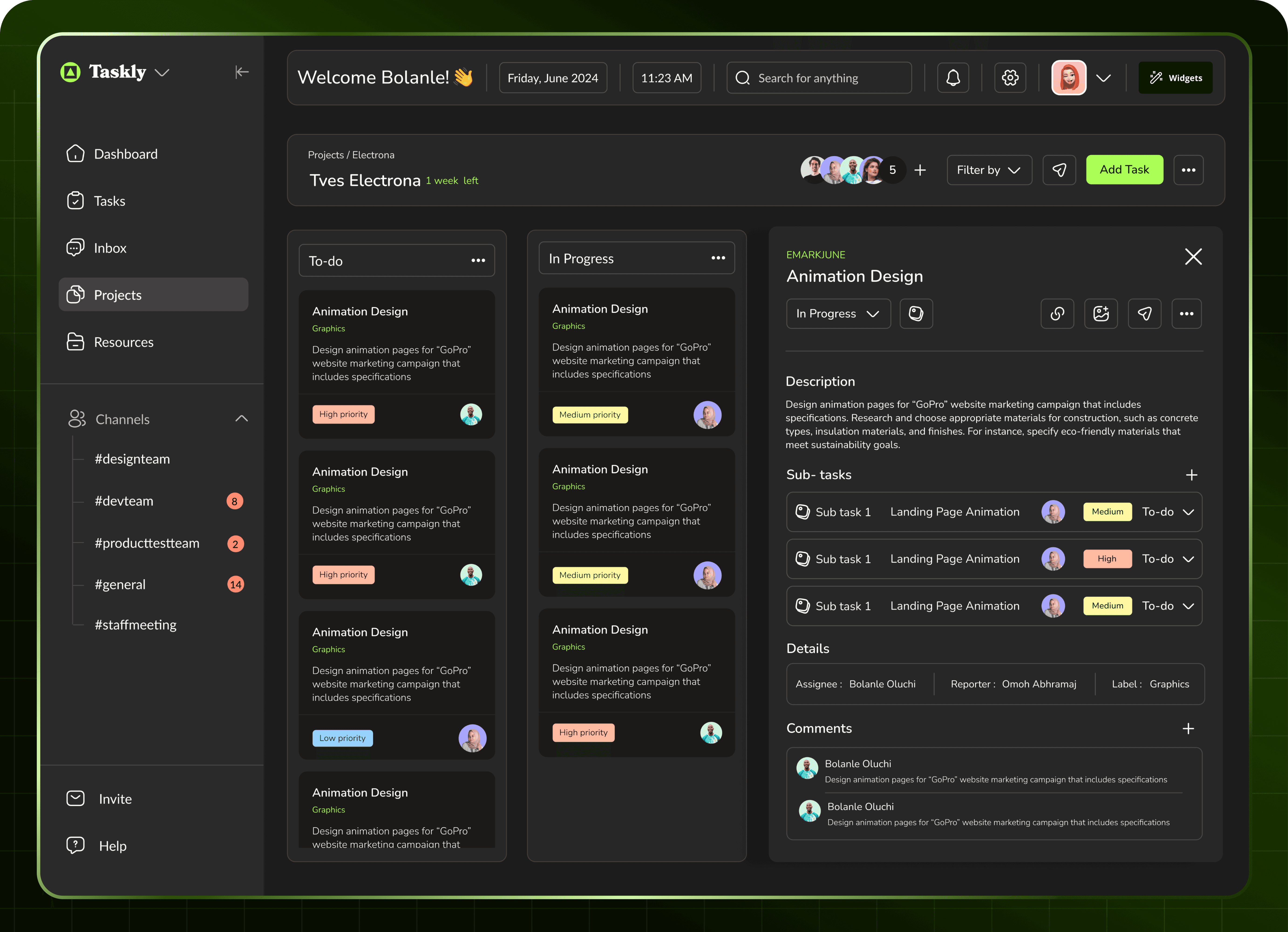 A drag-and-drop Kanban board, in-app messaging, progress tracker, real-time collaboration, and minimalist task dashboards — everything needed to manage projects efficiently without the bloat.